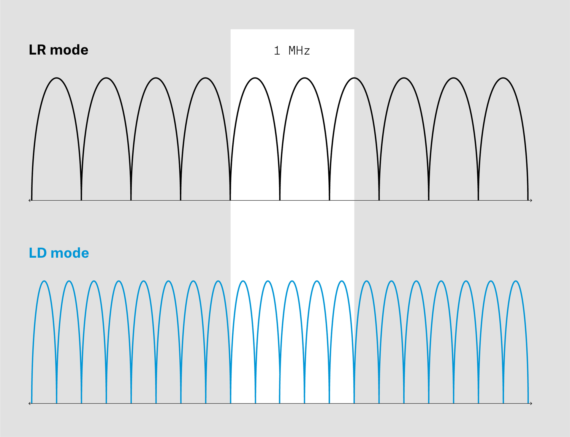 在链路密度模式下,我们使用新开发的森海塞尔高性能音频编解码器 (SePAC) 优化了数据传输速率。等距通道间距已减小到最小 200 kHz,现在可以在 1 MHz 带宽内实现 5 个通道。需求与性能之间的这种新平衡创造了新的可能性,可满足更多应用场景的需求。